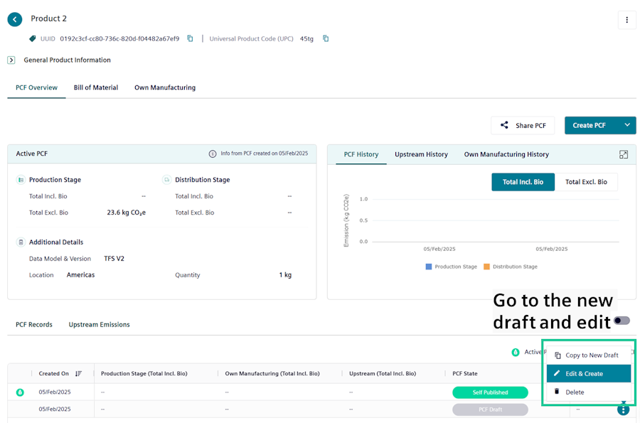 To do that, simply head over to your Product Portfolio and navigate towards a product for which you want to re-edit or update it's Product Carbon Footprint (PCF).