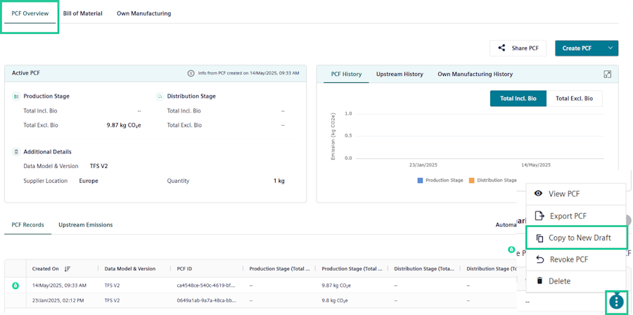 If you have already created your PCF and want to duplicate it to make edits or add a new standard or as a way to simply update your PCF. SiGREEN now enables you to copy the already created PCF to a draft, saving you time and effort. Once a PCF is created, it cannot be updated. However, it can be copied as a new draft.
