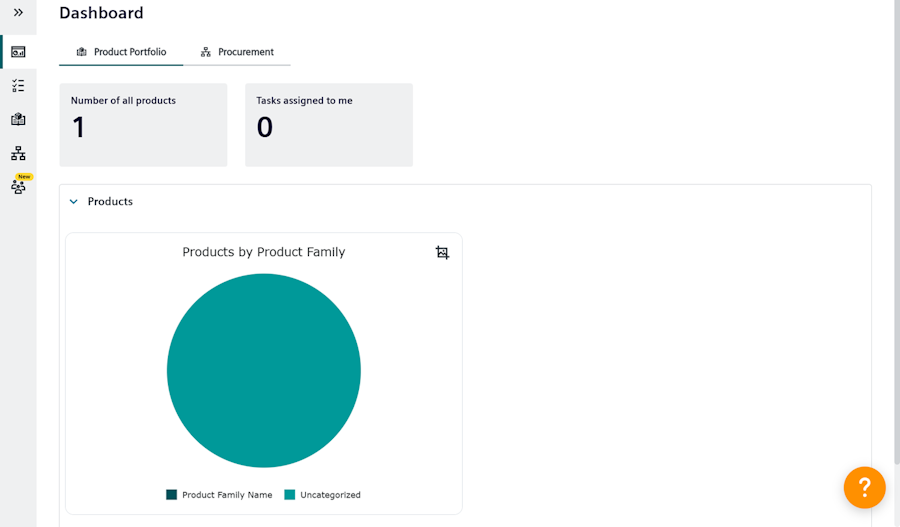 The product portfolio dashboard introduces new ways to view product information, making it easier to analyze product families and track task progress. The updates combine different chart types to show distribution, task status, workflow over time, and request sources, all with interactive elements for clarity.
